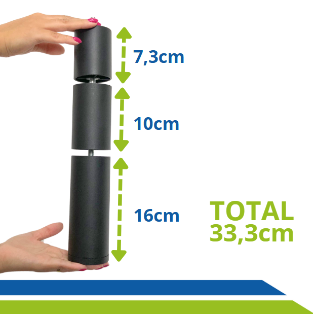 - Pés adaptáveis com opção de 3 tamanhos de altura ( 16 cm, 10 cm ou 7,3 cm ) com o tamanho total 33 cm;